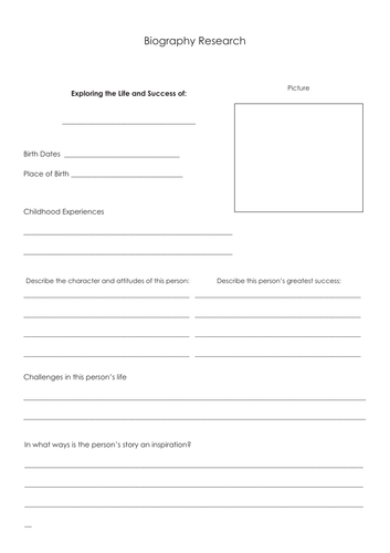 Ks2 Biography And Autobiography Teachit Primary from www.teachitprimary.co.uk For each of the famous people we feature, we include a selection of colouring pages, notebooking pages, crafts, worksheets, learn to draw tutorials and much more. Biography examples for children to learn about famous people. Twinkl's significant individuals fact file template is the perfect resource for ks1 students who are building portfolios on people who have significantly impacted their life. If time allows, read aloud an autobiography or have students choose autobiographies to read on their own. Author studies are book based literature units that will work for a child of any age. Learn the life story and biography of influencial people: Us presidents, world leaders, inventors, women, artists, civil rights heroes. A research template for older students to use when writing a biography.
